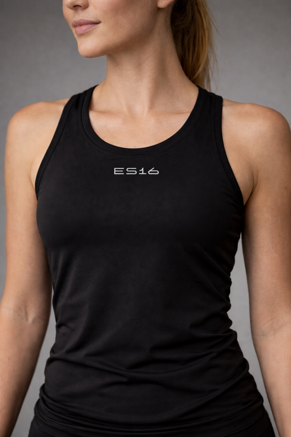 Aan de voorkant is de tanktop voorzien van een subtiel reflecterend ES16-logo, dat zowel een exclusieve visuele touch toevoegt als de zichtbaarheid bij weinig licht vergroot — een functioneel detail dat veiligheid en stijl combineert.